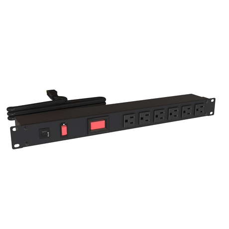 Hammond 1582 PDU (1P) 15A/125V FO (R) (6) 5-15R P/5-15P 6ft BK