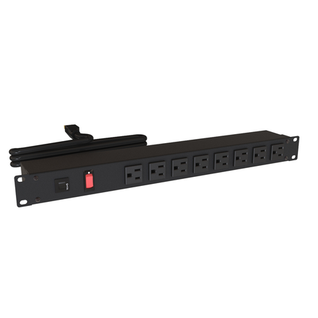 Hammond 1582 PDU (1P) 15A/125V w/Switch FO (8) 5-15R P/5-15P 15ft BK