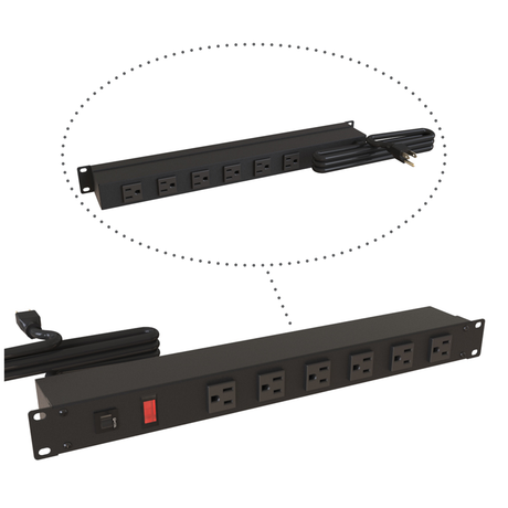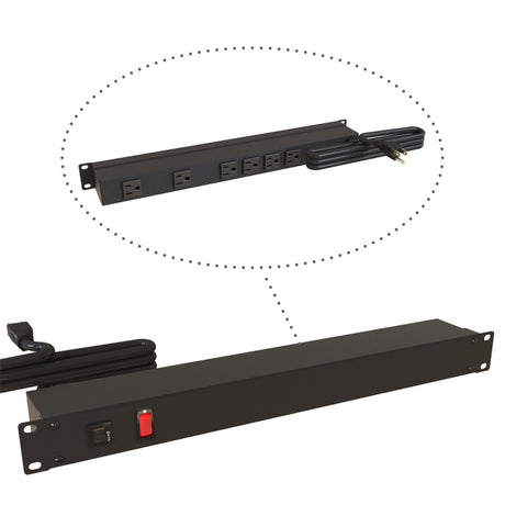 Hammond 1583 PDU 15A/125V (1P) I/Switch FO(6) RO(6) O(5-15R)P/5-15P 6 ft BK
